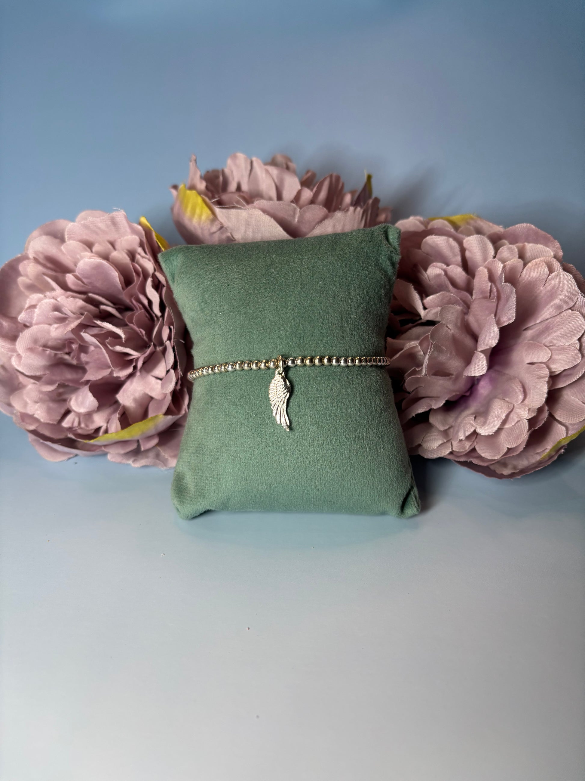 This sterling silver beaded bracelet showcases a beautifully detailed large Angel Wing charm, symbolizing protection and strength. Crafted with polished silver beads, it offers a perfect blend of elegance and meaningful design. Lightweight and versatile, this bracelet is ideal for adding a spiritual touch to everyday wear or special occasions, making it a thoughtful gift or a personal reminder of guidance and hope.